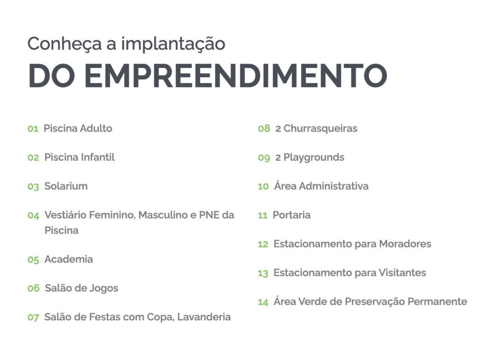 Piscina adulto, piscina infantil, solarium, vestiários na piscina, academia, salão de jogos, salão de festas, churrasqueiras, playground, portaria e área verde de preservação permanente e muito mais…