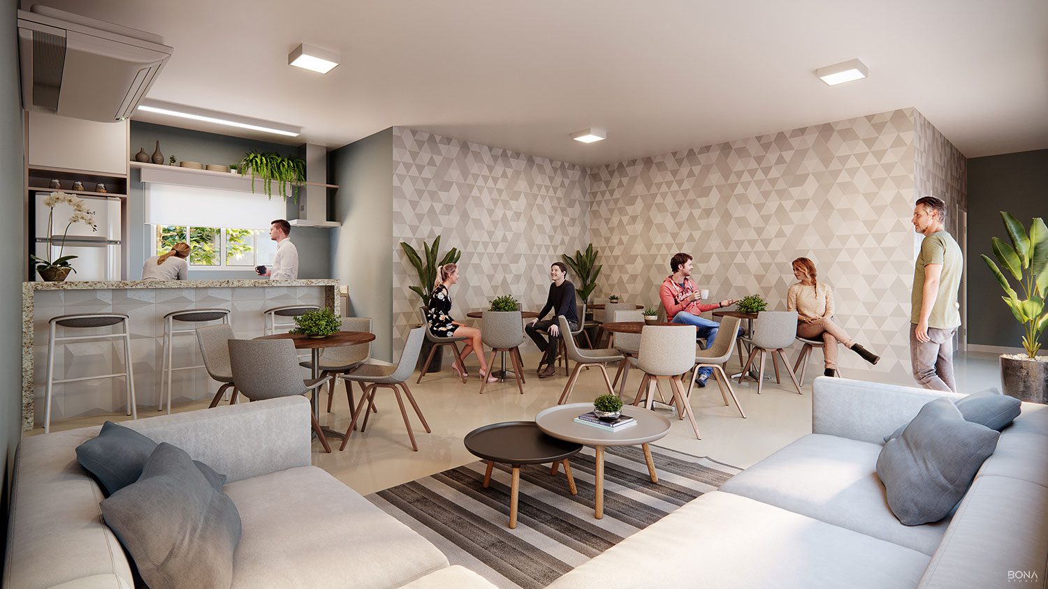 A harmonia de morar em um condomínio completo.