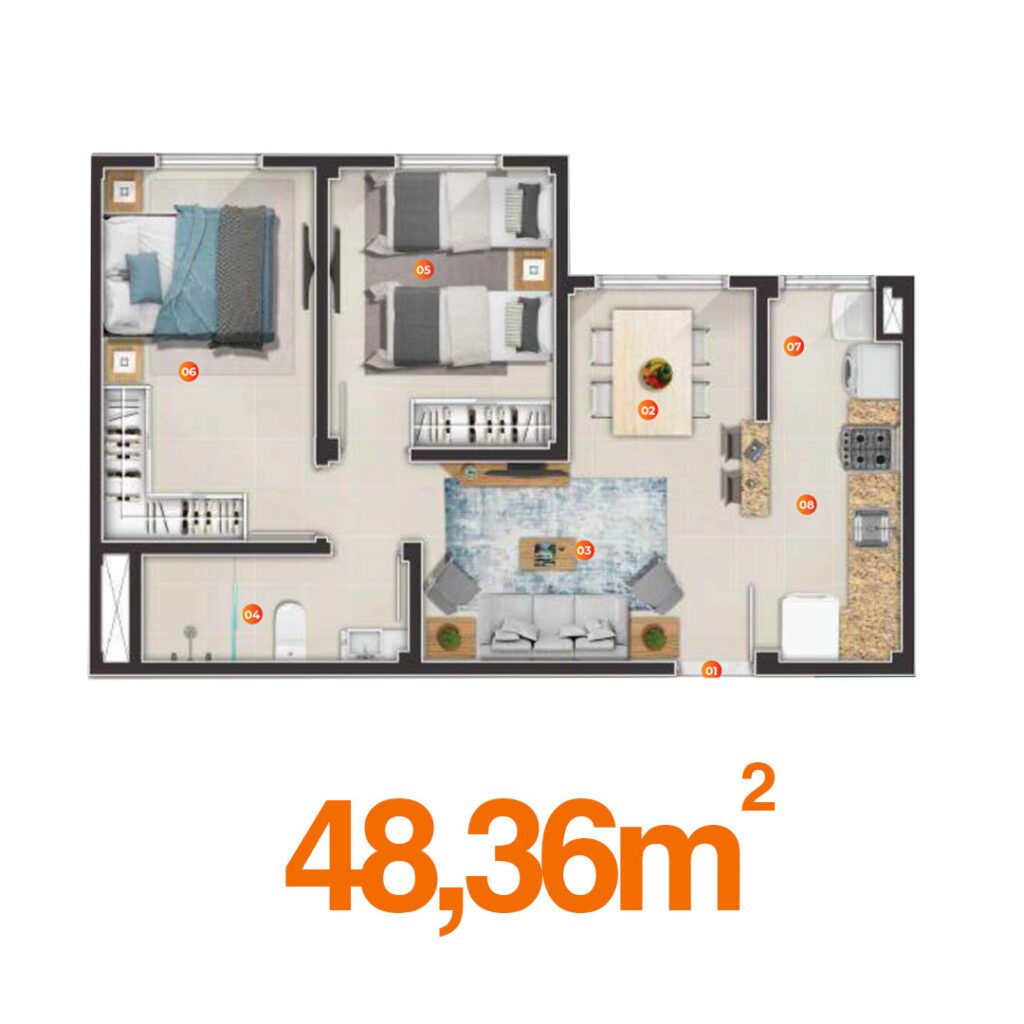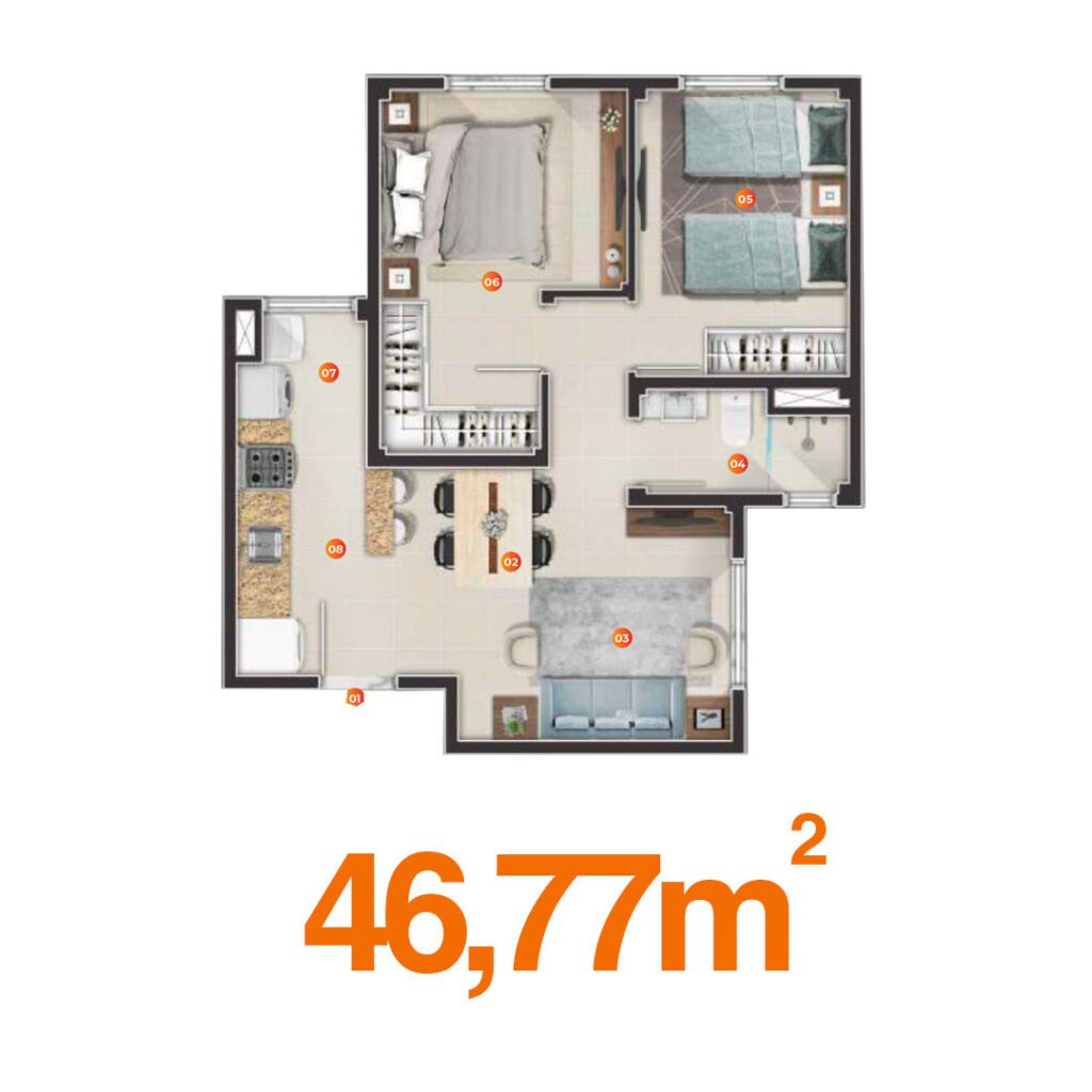 Plantas inteligentes de 46m² a 48m² que unem conforto e sofisticação, em localização privilegiada. No Vívere, viver bem não é só uma promessa, é uma realidade. Com lazer completo, segurança 24h e muito conforto, aqui você transforma sua rotina em qualidade de vida.